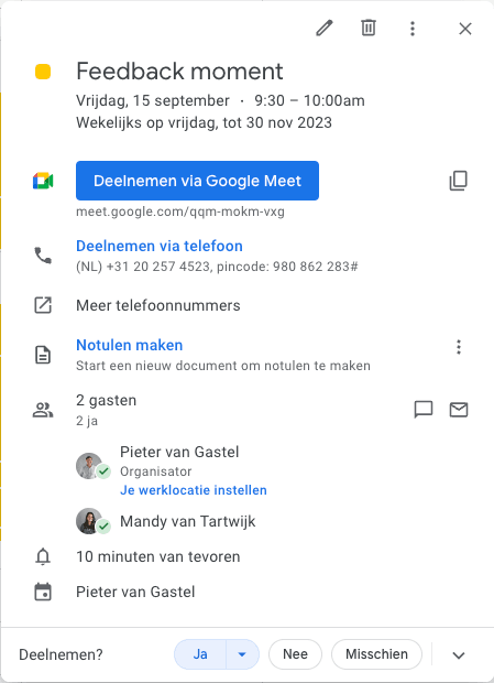 Na het ontvangen van feedback van collega’s, heb ik tijd genomen om hierop te reflecteren. Deze reflectie was gericht op het identificeren van leer- en verbeterpunten en hoe ik deze informatie kan gebruiken voor mijn groei.